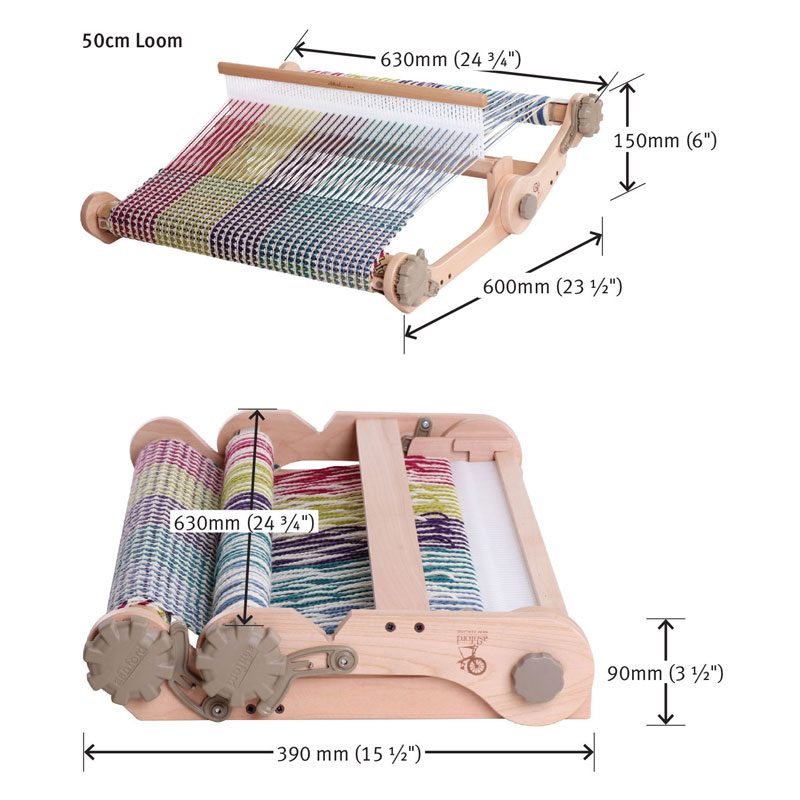 The most popular size on the Knitter's Loom family. The loom is ultra portable being lightweight, compact and folds in half – even with your weaving in place. Fast - from yarn to scarf in two hours. Easy - a loom that is simple to understand and operate with nylon warp stick ties, handles, cogs and pawls. The loom is made from Silver Beech hard wood and comes assembled and lacquered.
