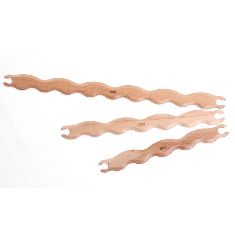 Create interesting and decorative patterns by beating the weft into place with our wavy shuttles. You can use these shuttles with any Ashford looms.